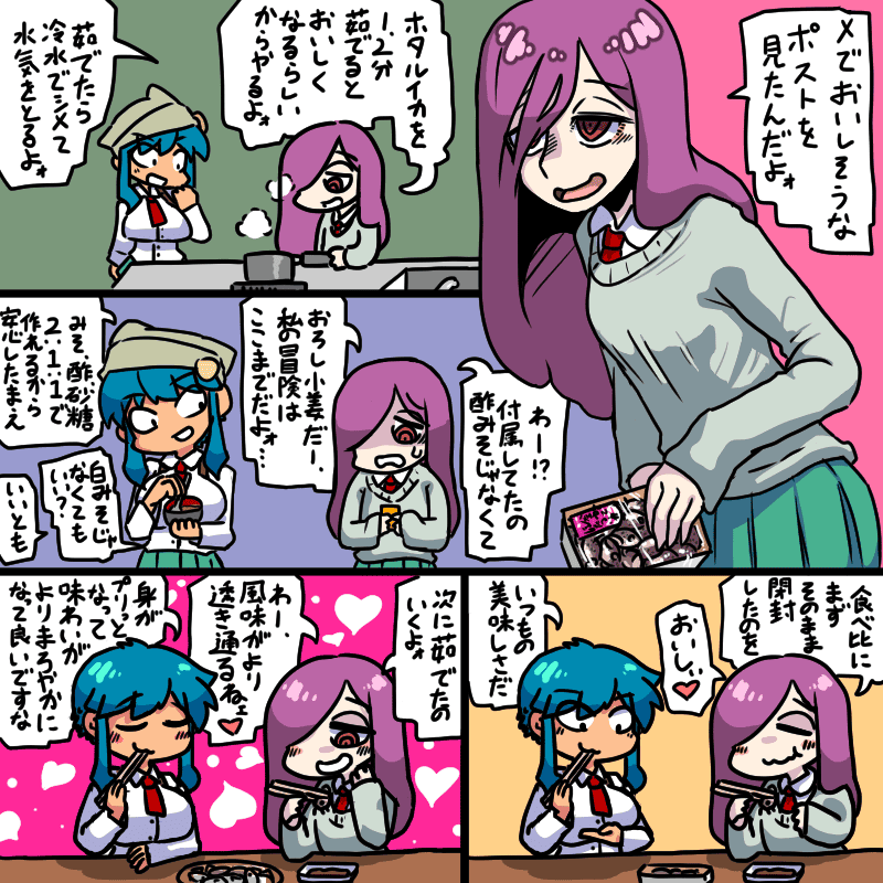 ・過去の日記ログ ・26/03/1 3月のトップ絵 春の訪れを告げるような、そんなトップ絵を描こうと 色々構図を考えてたんですが、うまいこと纏まらず 気づけばルドンみたいな絵を描いてました。 なに、どこかで見たネタですって? 「なんのことやら?」 手前のオブジェクトで体の大部分が隠れるから描かなくていいのだ。 ゲーム等でたまに見る隠れている部分をチートで外したらそこにロマンがある そんな旨い話は9割無いのだ。。 クリームシチュー作る 拍手にて、クリームチーズを入れるとシチューがメチャ美味しくなるという ウマい話を頂いたので早速試してみる事に。 代行:浅葱さんと蒲萄先輩 よくグラタンを作るのですが、多分具と粘度の違いだけで同じ作りかただろうと言った感じで作る。 めっちゃ美味しかったです。 フランスパンに合う、マカロニに合う、米と焼いてドリアにしても美味しい。 こりゃあまた作りたいですね。 ホタルイカ茹でる 別件で描いた漫画があったので二本立て。 かなり美味しくなるので、みんな茹でよう。 あと酢味噌作ったのですがホタルイカに付属しているのはからし酢味噌ですね。 上のレシピに心行くまで練りからしも混ぜてくだせえ。 ところでついてきた生姜はどう使うんだろう、醤油で食べるのかな? それも今度試してみよう。 switch2 Amazonから招待メールのキャンセルメールが来たんですよね。 期限切れか?と思ったら一般販売の目途が立ったので招待販売終了との事。 …待ってたぜ、この時をよぉ!! 代行:笹百合 まずこうじゃろ? ポイント払いでもポイントって付くんですね。 それがこうなって、 こうよ! …長かった、やっと買えた。 早速遊ぶぜ! 遊べたのは購入してから一週間後の事でした。 プロフィール画像作成。 ユーザーネームケムニャなのでゴリラな方を作りたかったのですが デフォルトで顔色悪くできないから仕方ないね。 ポチっぽいのを上手く作れてご満悦だし仕方ないね。 付属のマリオカートワールドをプレイ。 マリオカートはGBA以来だったのですがやはり面白い。 ヨッシーは可愛いですね。 面白いですが、なんかこう物足りない、子供の頃プレイしたあの白熱を感じない。 そう、対戦相手がいなければマリオカートの面白さは20%程度になってしまう。 ならネット対戦で見知らぬ人を倒すしかないでしょうニ! しかしネット対戦は月額がかかると知り、とりあえず後回しという事に。 nintendoonlinはいずれ必ず入ります、そして世界中の猛者と戦います。 加入してバーチャルボーイのゲームもやりたいですからね! マリオカートは一旦置いて、switch2を入手したので是非ともプレイしたいゲームがあるんですよね。 switch1のソフトを何年も指くわえて見る事しかできなかったのです、 めっちゃ楽しませてもらいますよ。 ところで発売してかなり経ってるのに全然安くなってませんね。 アテが外れたので一個づつ買ってプレイしたいと思います。 最初はどれにしよっかなあ。 落書き まったく何も描けてなかった…。 【失われゆく倫理】アメリカ最先端医療の舞台裏【後編】 この哲学者…人の心とかないんか? 上記の動画は後編なので、先に前半の【倫理問題】アメリカ最先端医療の舞台裏 【亜留間次郎】も是非是非。 久しぶりに見ましたが、やっぱクラレ先生の薬理教凶室は面白い。 それはそれとして人の心とかないんか? ゲーム開発室 やっとシナリオデータ書き終えました。 ちょっとしたストーリーのハズが200kbも…それでもdaily&worst:rEの1/3かたいした量じゃないですね! 後は死ぬほどテストプレイをして色々調整をしたら完成なのですが それが面倒で面倒で…前作もその作業が面倒で数年サボった覚えが。 気を引き締めて今月中にある程度形にする為に今月の中間更新は簡易更新か無しにするかもしれません。 拍手レス >大丈夫ですか? ご心配ありがとうございます。 あの時ばかりは手が折れたか良くてヒビ入ったかと思いましたが、 二週間くらいで完全に痛みが消えたんで安泰です。 今回スキーの為に買った1000円の手袋ゴーグル帽子フェイスマスク4点セットとかいうお得なのを 買ったのですが、手袋はその転倒で壊れるしフェイスマスクは洗濯したらふにゃふにゃになって 使い物にならなくなるしで、やはり一番良いのを頼まざるを得ないですね。 >えっ!!浅葱さんのクリームをたっぷり使ったシチューをいただけるんですか!? >(私のオススメはブロッコリーの代わりに白菜や長ネギを入れたシチューです。トロトロでンマイですよ) ああ! 白菜や白ネギですか、そういうのもあるんですね! それも今度やってみたいですね。 最近暖かくなってきてカレーやシチューが一番おいしいシーズンが終わろうとしているので 早くとりかからなければいけませんな。 >ラモ◯氏とかマルフ◯イ氏も驚きですが、調べる度にご存命で驚いてたムツ◯ロウさんも亡くなってしまいましたしな… ここ数年、私の子供の頃のヒーローのような存在が 次々にお亡くなりになってと