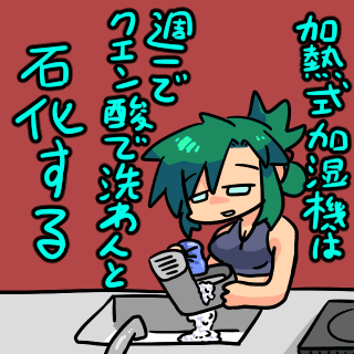 加熱式の加湿器を使っているのですが、一週間くらいで中が石化するのでクエン酸で溶かす作業が面倒くさい。しかし超音波式はこれだけの成分が空気中に散布されてるのか。2026/01/27 23:18:55